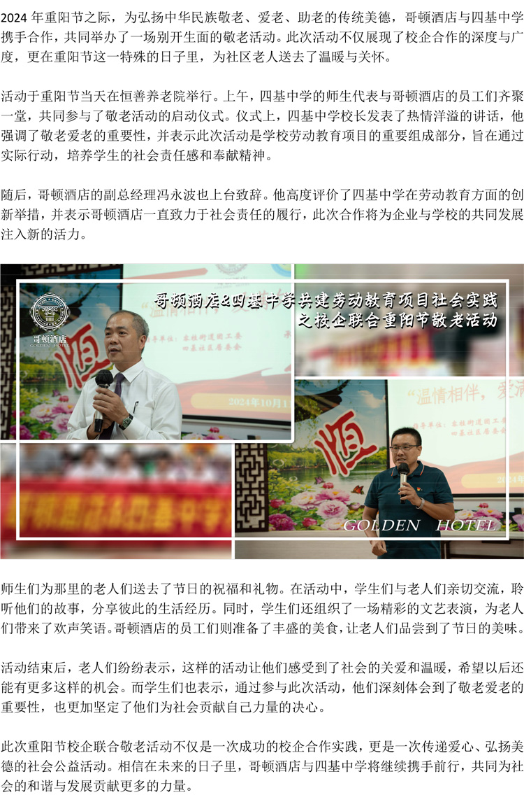哥頓酒店&四基中學勞動教育項目——重陽節校企聯合敬老活動圓滿成功