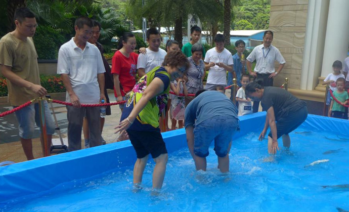 在本次活動(dòng)中最激動(dòng)人心的就要數(shù)捕魚(yú)達(dá)人游戲了,在幾十平方米大的水池,放的都是兩斤以上的大魚(yú),人們紛紛排隊(duì)進(jìn)水池捕魚(yú),只要在限定時(shí)間內(nèi)抓到就是自己的啦!!